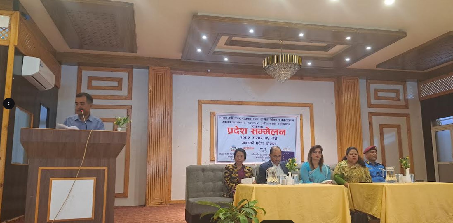 पोखरा । गण्डकी प्रदेशका मानव अधिकार रक्षकहरूले आफ्ना अधिकारको संरक्षण र सुरक्षाका लागि सरकारसँग १६ बुँदे माग गरेका छन् । अनौपचारिक क्षेत्र सेवा केन्द्र(इन्सेक) गण्डकी प्रदेश कार्यालयद्वारा पोखरामा असार १५ गते आइतबार आयोजित प्रदेश स्तरीय मानव अधिकार रक्षक सम्मेलनमा प्रदेशभरिका करिब १०० जना मानव अधिकार रक्षकहरूको सहभागितामा यो घोषणापत्र पारित गरिएको हो । कार्यक्रम इन्सेक गण्डकी प्रदेश कार्यालय, गण्डकी प्रदेश सरकार अन्तर्गत मुख्यमन्त्री तथा मन्त्रिपरिषद् कार्यालय र युरोपियन युनियनको सहकार्यमा आयोजना गरिएको हो ।