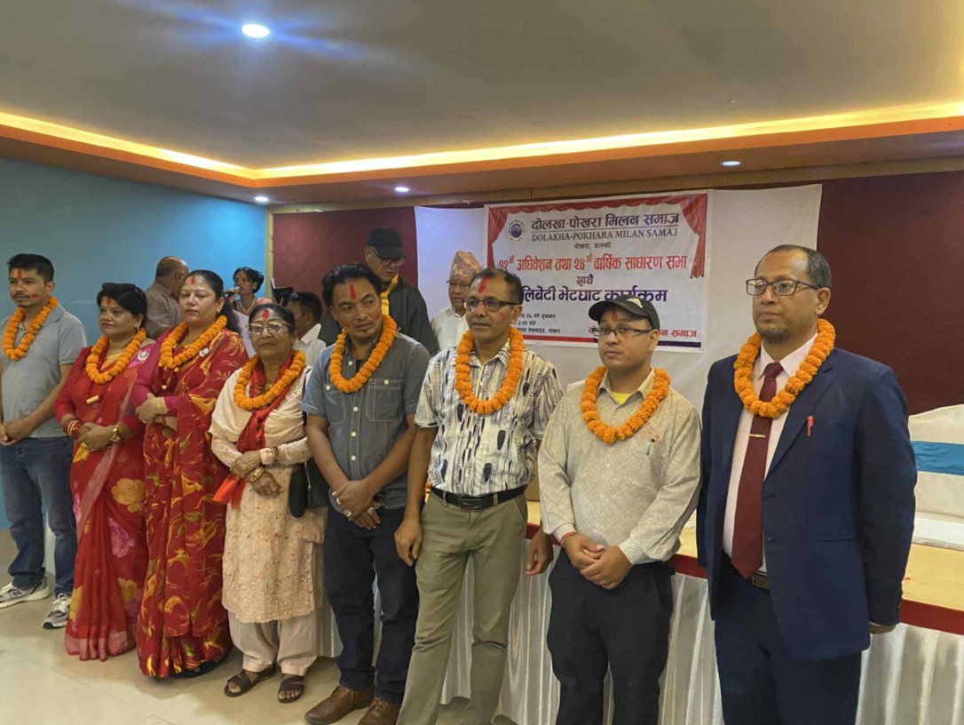पोखरा । दोलखा स्थायी घर भई पोखरालाई कर्मथलो बनाई पोखरामा बसोबास गर्दै आएका सम्पूर्ण दोलखालीहरूको साझा संस्था दोलखा पोखरा मिलन समाजले आफ्नो १२ औं अधिवेशन तथा २४ औं साधारण सभाले धन बहादुर खड्काको अध्यक्षतामा ११ सदस्यीय कार्यसमिति चयन गरेको छ।