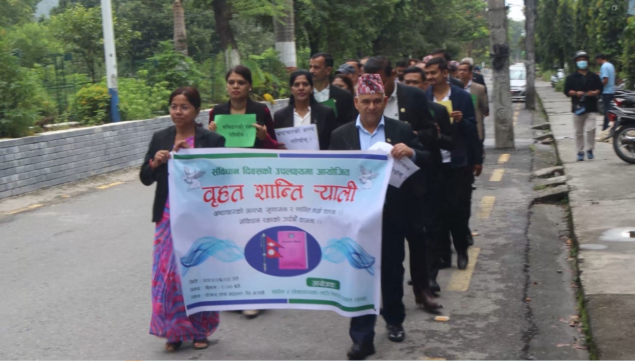 पोखरा । पोखराका कानून व्यवसायीले संविधान दिवस मनाएका छन् । शान्ति र लोकतन्त्रका लागि पेशागत सञ्जाल पापडको आयोजनामा पोखरामा वृहत मौन शान्ति र्यालीसहित संविधान दिवस मनाएको हो । नेपालको संविधान २०७२ घोषणा भएको १० वर्ष पुरा भएको अवसरमा शुक्रबार उच्च अदालत पोखराको गेटबाट सुरु गरिएको मौन र्याली मुस्ताङचोक, राष्ट्रबैङ्क चोक हुँदै सहिदचोकमा पुगेर समापन गरिएको थियो ।