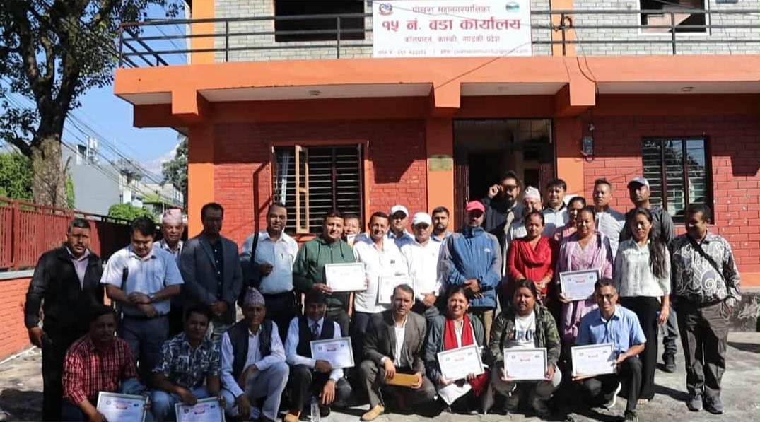पोखरा। पोखरा महानगरपालिका वडा नं. १५ ले वडा कार्यालय भवन पुनः सञ्चालनका लागि सहयोग गर्ने व्यक्ति तथा सङ्घसंस्थालाई सम्मान गरेको छ । जेनजी आन्दोलनको क्रममा गत भदौ २४ गते आगजनी र तोडफोडका कारण खण्डहर बनेको कार्यालय भवन पुननिर्माणसँगै कार्यालय सञ्चालनका लागि आवश्यक पर्ने भौतिक सामाग्रीहरू सहयोग गर्ने २७ वटा सङ्घसंस्थालाई शुक्रबार एक कार्यक्रम आयोजना गरेर सम्मान गरिएको हो ।