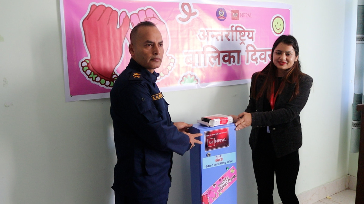 पोखरा । आज शनिबार अन्तर्राष्ट्रिय बालिका दिवस, नेपालमा पनि विविध कार्यक्रम गरी मनाइएको छ । दिवस सन् २०११ देखि हरेक वर्ष अक्टोबर ११ मा मनाइन्छ । अन्तराष्ट्रिय बालिका दिवसको अवसरमा एड्स हेल्थकेयर फाउन्डेसन (एएचएफ) नेपाल, गण्डकीले वडा प्रहरी कार्यालय बैदाममा सेनेटरी प्याड भेन्डिङ मेसिन हस्तान्तरण गरेर यो दिवस मनाएको छ ।