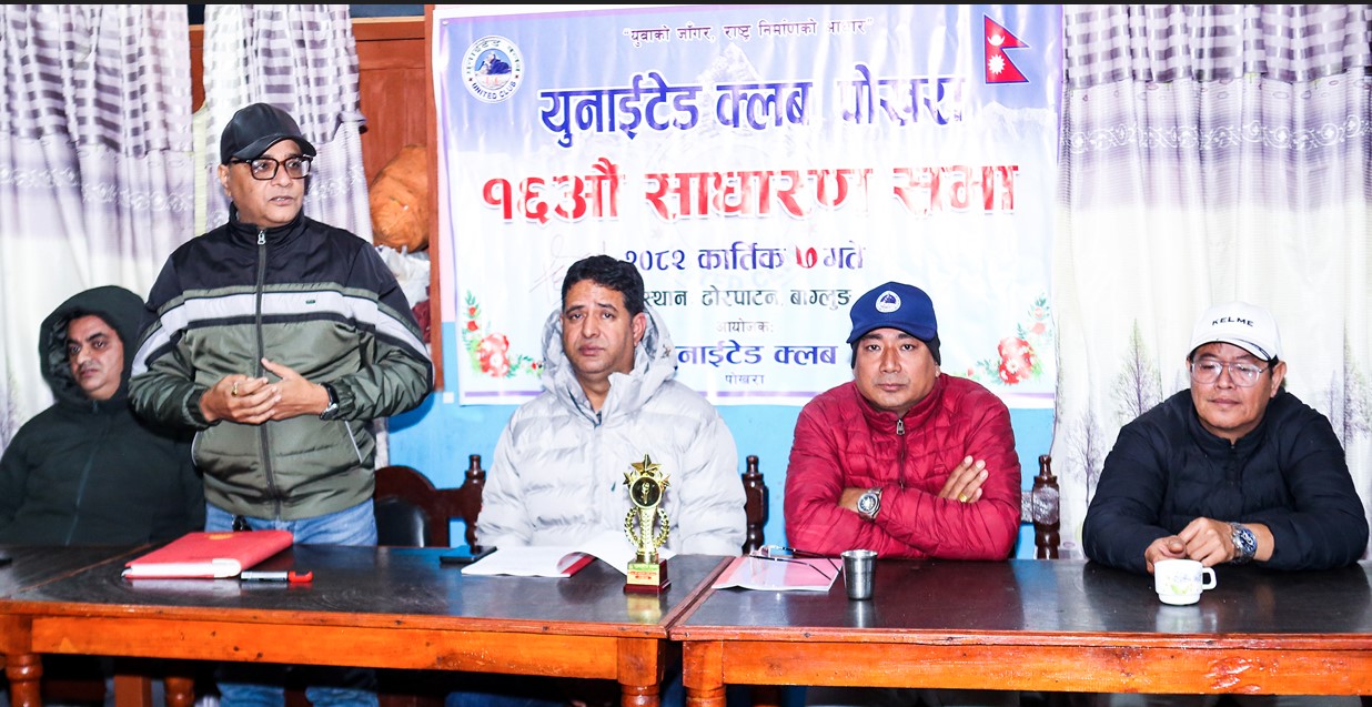 हालै सम्पन्न साधारण सभामा वोल्दै युनाइटेड क्लब पोखराका संस्थापक अध्यक्ष हिमालय बख्रेलले युनाइटेड क्लबले सामाजिक कामका लागि पोखरा महोत्सवलाई निरन्तरता दिदैँ आइरहेको र आगामी १४ औं संस्करणको पोखरा महोत्सवमा समेत सबैले साथ र सहयोग गर्नुपर्नेमा जोड दिए ।