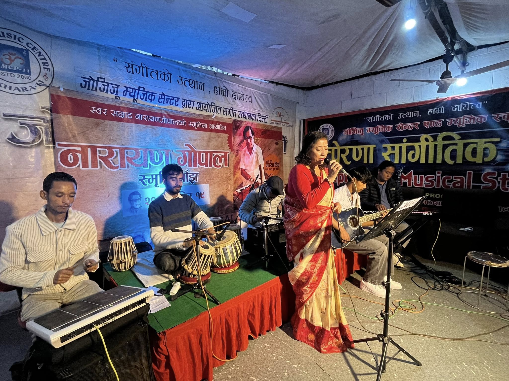 पोखरा । उत्प्रेरणा साङ्गीतिक मञ्चको प्रस्तुति र सप्तरङ्गी सांस्कृतिक प्रतिष्ठान नेपालको दोस्रो सांस्कृतिक शृङ्खला अन्तर्गत ३५ औं नारायण गोपाल स्मृति दिवस कार्यक्रम जोजिजु म्युजिक स्कुल रानीपौवामा सम्पन्न भएको छ। उक्त कार्यक्रमको उद्घाटन गर्दै अग्रज साहित्यकार, संस्कृतिकर्मी एवम् नेपाल सङ्गीत तथा नाट्य प्रज्ञा प्रतिष्ठानका सदस्य सचिव तीर्थ श्रेष्ठले पोखरामा हुने यस्ता साङ्गीतिक कार्यक्रमले पोखरा क्षेत्रको संगीत क्षेत्रको प्रबर्द्धन हुने विश्वास व्यक्त गरे ।
