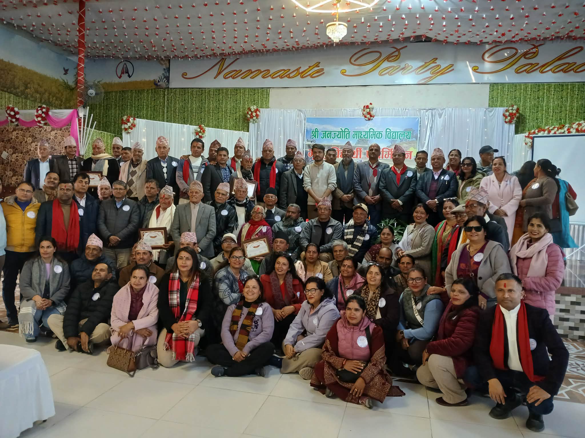 पोखरा । जनज्योति माध्यमिक विद्यालय पोखरा २८ कालिकाको पूर्व विद्यार्थी तथा शिक्षकहरूको पहिलो पटक औपचारिक रुपमा बृहत् भेला, पुनर्मिलन तथा बनभोज कार्यक्रम सम्पन्न भएको छ ।जनज्योति मावि भूपू विद्यार्थी मञ्चका संयोजक कीर्तिबल्लभ त्रिपाठीको अध्यक्षतामा पोखरा–२६ स्थित नमस्ते पार्टी प्यालेसमा आयोजना गरिएको सो कार्यक्रममा ठुलो सङ्ख्यामा भूपू विद्यार्थी शिक्षकहरू सहभागि भएका थिए । वि.स. २०१६ सालमा स्थापना भएको विद्यालयले २०२६ सालदेखि एसएलसी परीक्षामा समावेश हुँदै आएको थियो ।