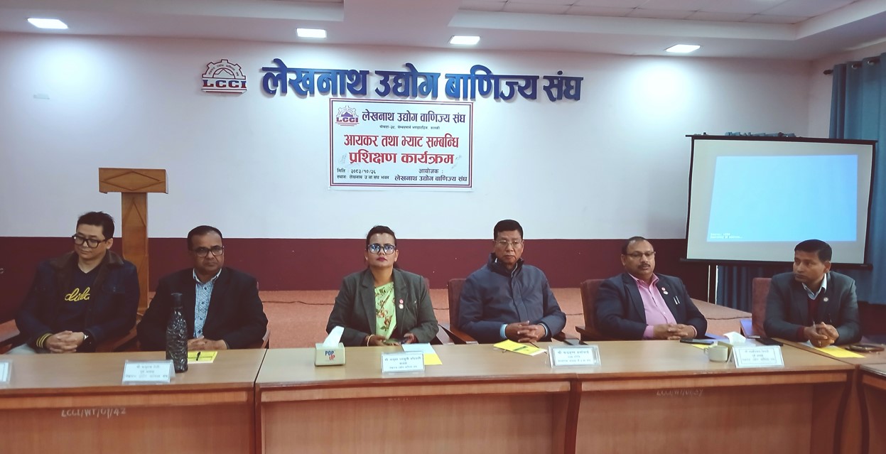लेखनाथ । लेखनाथ उद्योग वाणिज्य सङ्घले व्यवसायीहरूका लागि आयकर तथा मूल्य अभिवृद्धि करसम्बन्धी तालिम आइतबार सम्पन्न गरेको छ । तालिमको शुभारम्भ गर्दै सङ्घका संस्थापक अध्यक्ष चन्द्रकृष्ण कर्माचार्यले तालिममार्फत व्यवसायीहरूले जीवनभर आफूलाई उपयुक्त हुने ज्ञान हासिल गर्न सक्ने र व्यवसायिक जीवनमा सफलता हासिल गर्न सकिने बताएका थिए ।