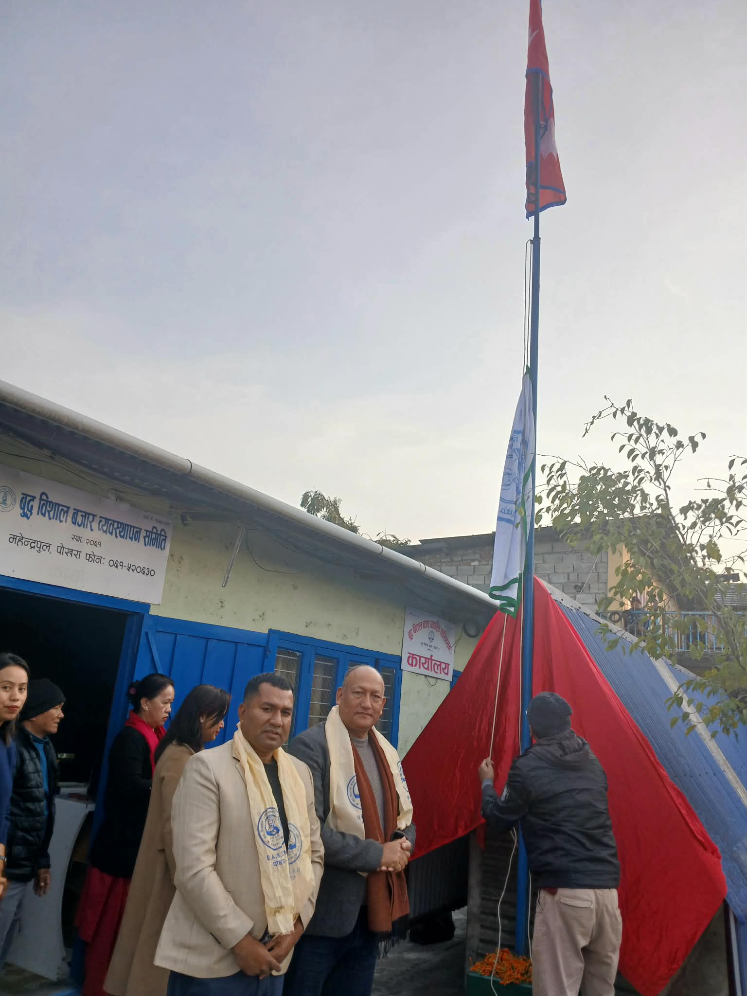 कार्यक्रममा बुद्व विशाल बजार व्यापारिक एशोसियसनका अध्यक्ष बुद्वि वहादुर कुँवरले बुद्व विशाल बजारका व्यवसायीहरूको आजको दिन एतिहासिक रहेको हुदा व्यापारिक एशोसियसनको लोगो अंकित झण्डा र राष्टिय झन्डा झण्डोत्तलन गरिएको बताउदै कुँवरले नेपाली झन्डाको बिशेष ईतिहास रहेको बताए ।