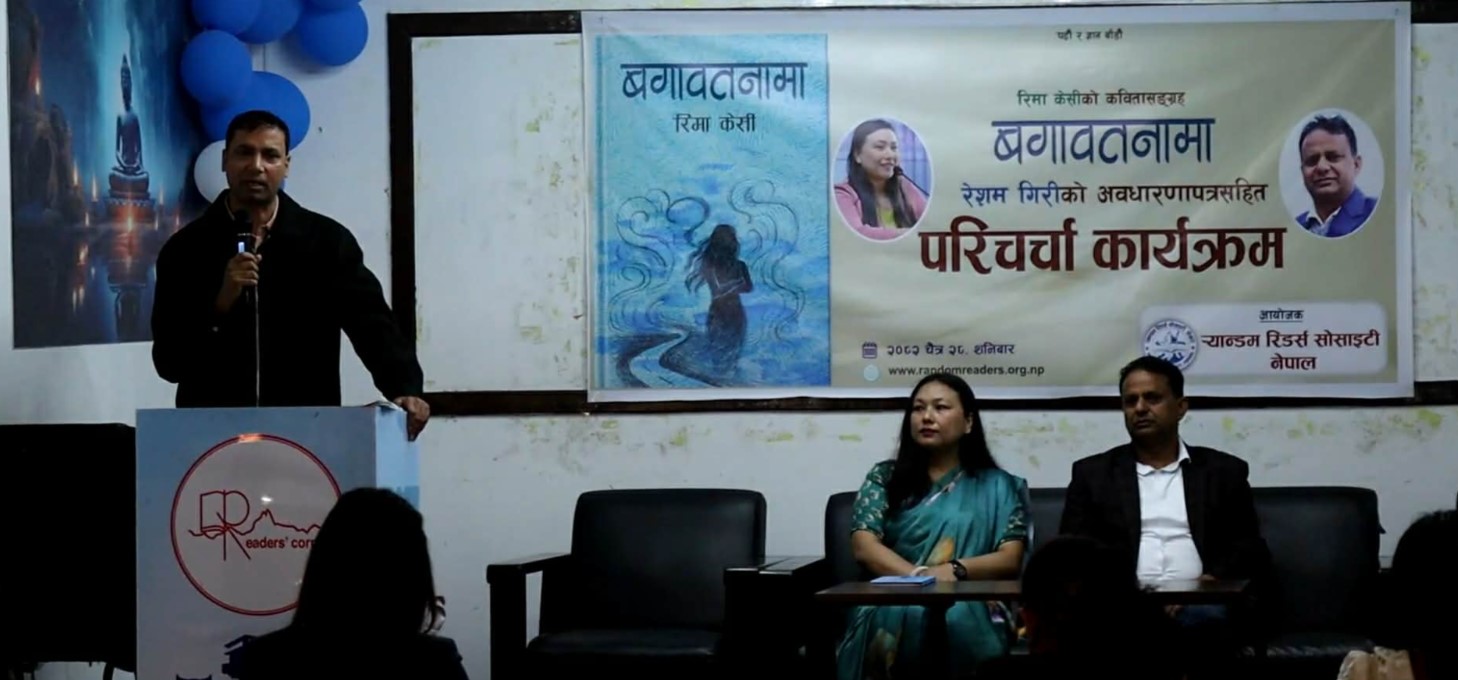 पोखरा । कवि रिमा केसीद्वारा रचित कविता सङ्ग्रह ‘बगावतनामा’ को परिचर्चा गरिएको छ । र्‍यान्डम रिडर्स सोसाइटी नेपालले पोखरामा शनिबार यो कृति माथिको परिचर्चा कार्यक्रम आयोजना गरेको हो । वर्ष २०८२ को अन्तिम शृङ्खलामा कविता सङ्ग्रह माथिको परिचर्चा गर्न पाइएको भन्दै र्‍यान्डम रिडर्स सोसाइटी नेपालका अध्यक्ष दीपक पराजुलीले खुशी व्यक्त गरे। उनले वर्ष २०८२ मा नयाँ शैलीमा लेखिएका पुस्तक समेत पाठकमाझ आएको भन्दै आफूहरूले पुस्तकको परिचर्चा गर्दा विविधता दिने प्रयास गरेको बताए ।